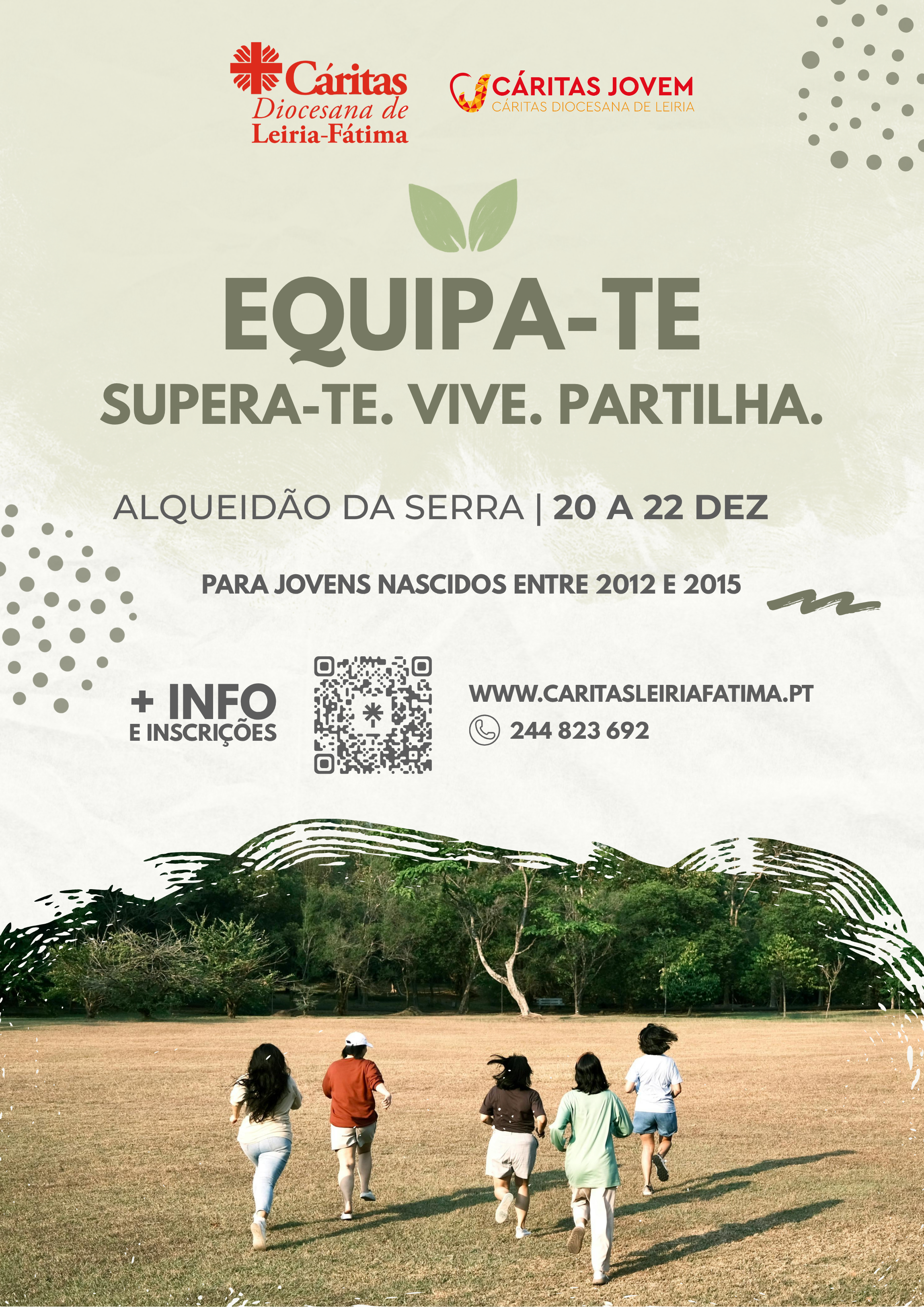 A Cáritas Jovem, da Cáritas Diocesana de Leiria, vai dinamizar, entre os dias 20 e 22 de dezembro, mais uma edição do Projeto Equipa-te, que este ano terá lugar em Alqueidão da Serra, no concelho de Porto de Mós.